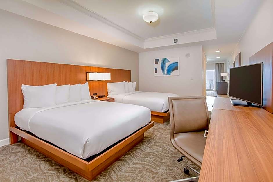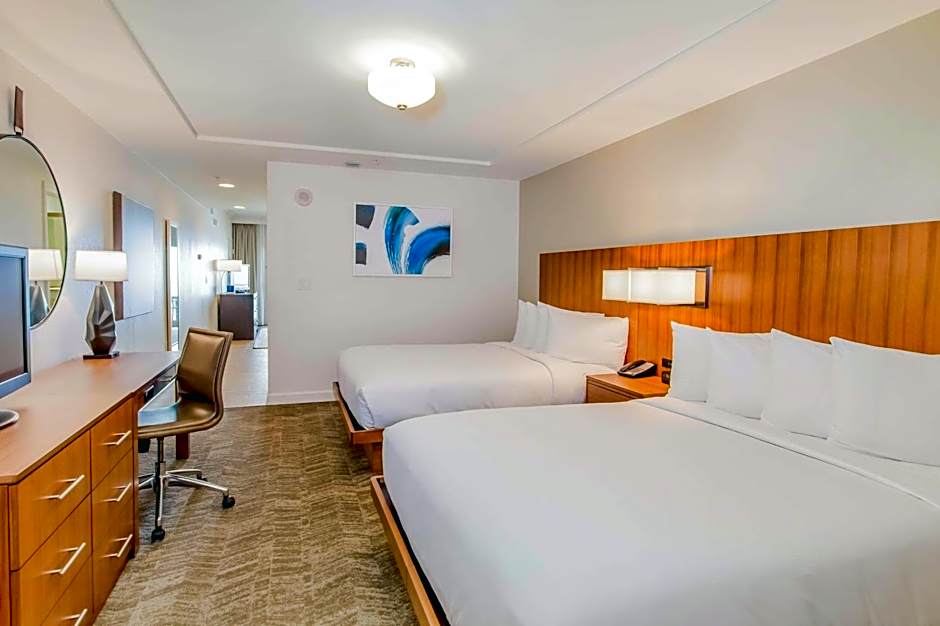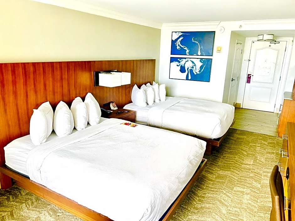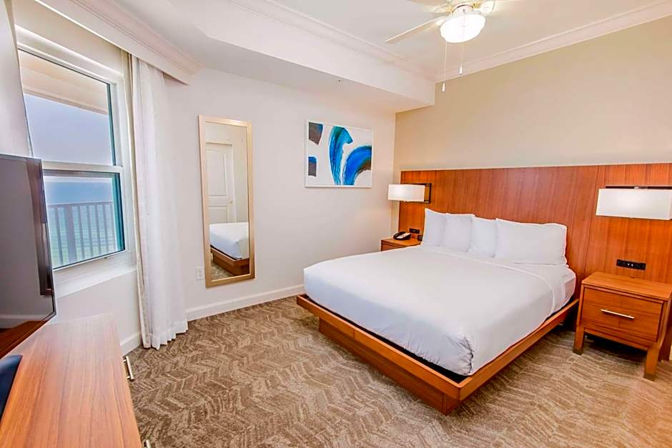 Beach views, two large private balconies, kitchen, dining table, sofa bed, complimentary WiFi This large suite features three bedrooms, one with a king-sized bed, one with a queen-sized bed, and the other with bunk-beds. Admire the view of the white sand Pensacola Beach from the balcony, or unwind in the en-suite bathroom with separate bathtub and shower. Relax in front of a flat-screen TV, in any bedroom or the living room, with premium cable channels and on-demand movies. Other amenities include complimentary WiFi, a dining table, and a fully-equipped kitchen with microwave, refrigerator, dishwasher and breakfast bar.